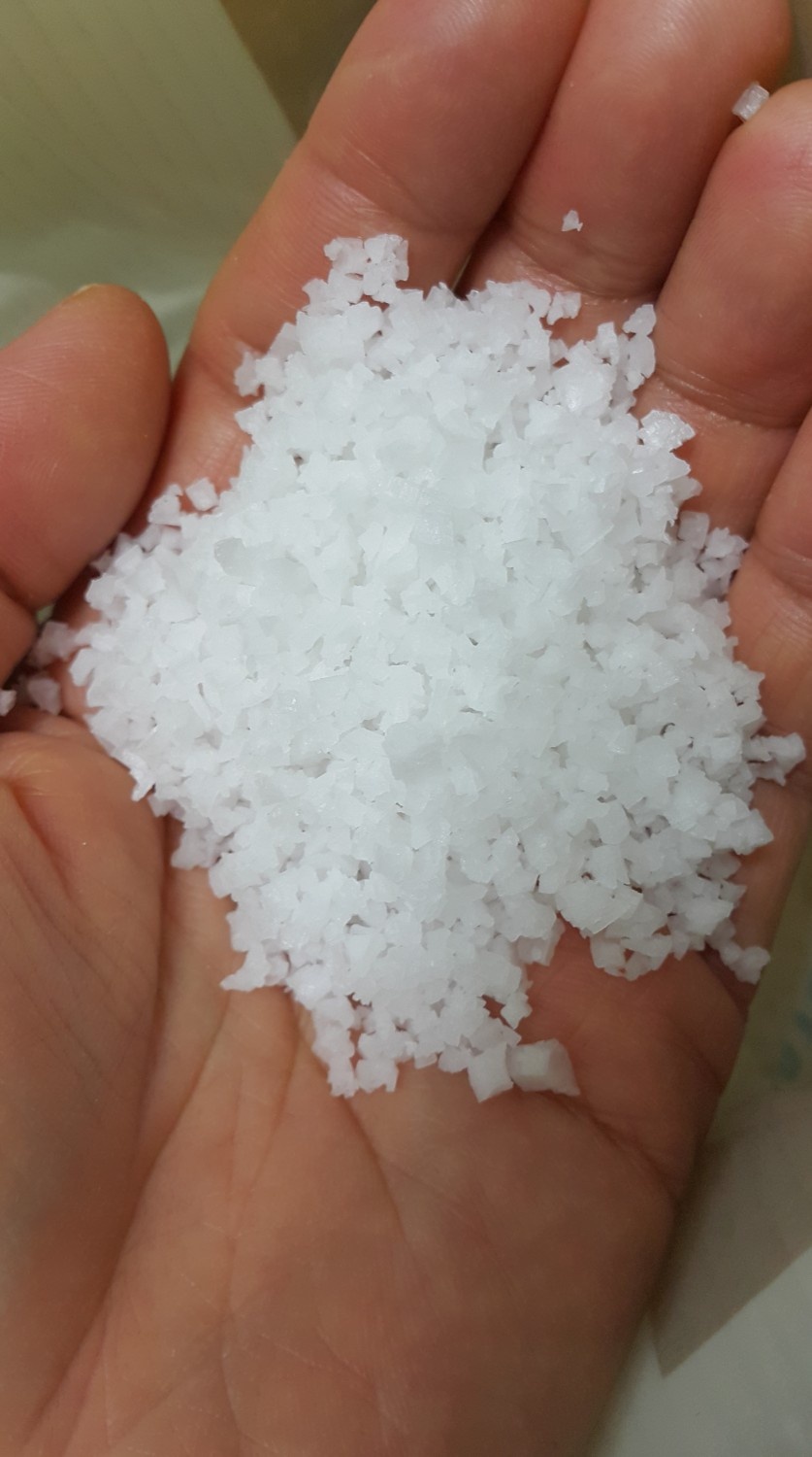 좋은 소금은 집었다가 놓으면 손에 달라붙는 소금알갱이들이 거의 없는 게 좋은 소금입니다.
