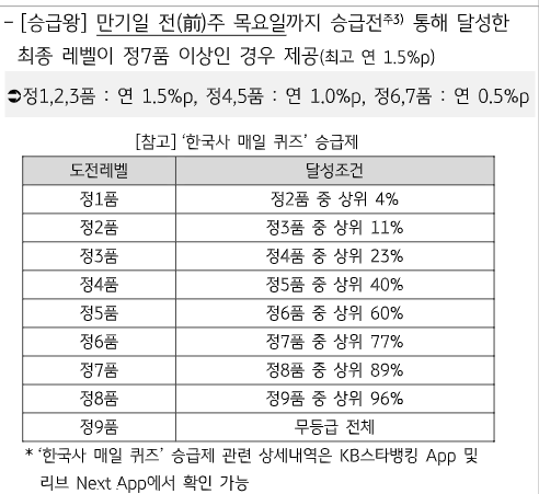 매주 수요일 진행하는 승급전에서 정7품 이상 달성 시최고 연 1.5%