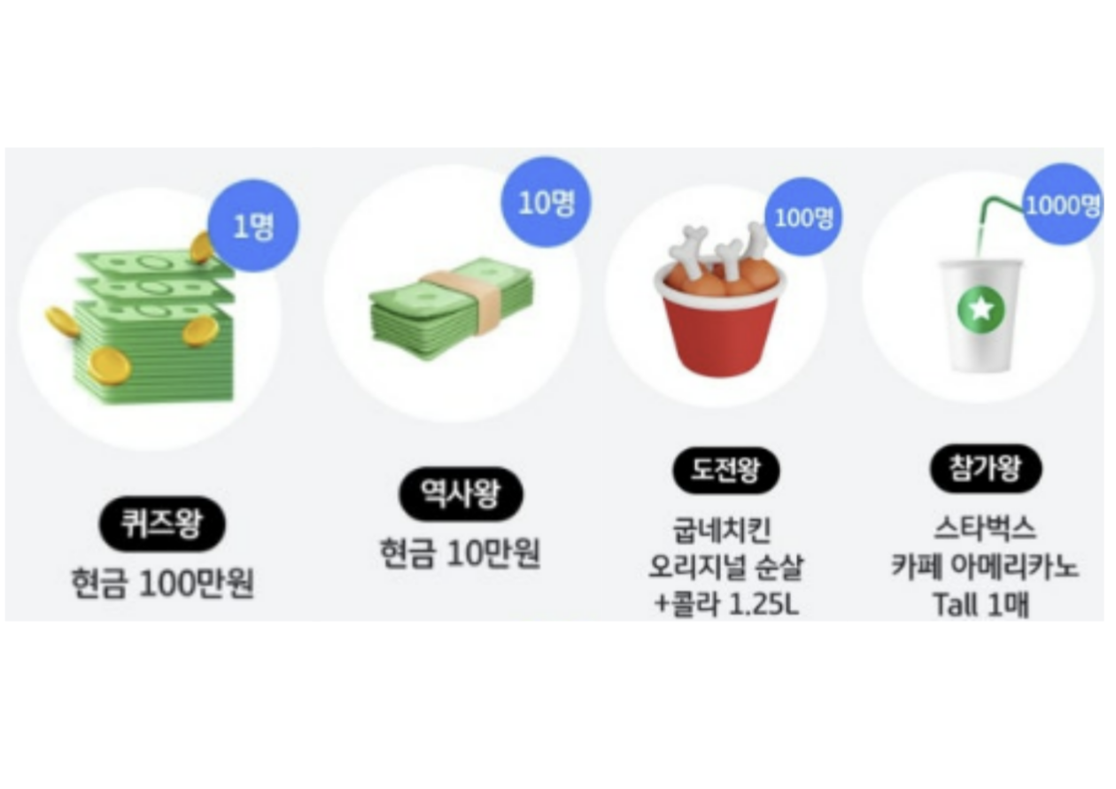 • 역사왕 : 현금 10만원 (10명)